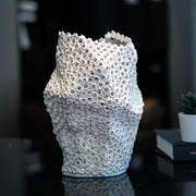 A striking handmade ceramic sculpture that features a sophisticated lattice design. Crafted from high-quality white ceramic, its intricate patterns and...